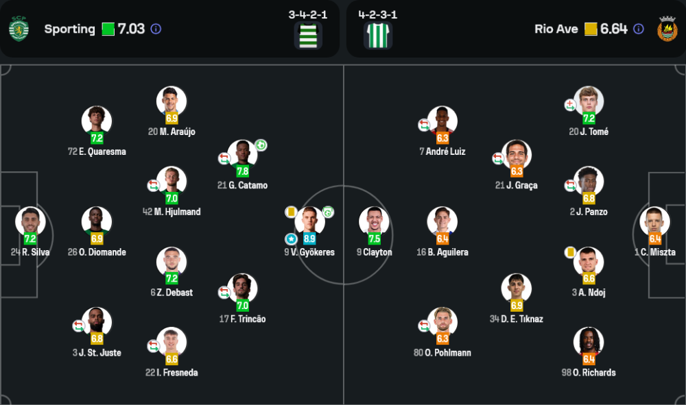 วิคเตอร์ เกอเคเรส เป็นหัวใจสำคัญของ สปอร์ติ้ง ลิสบอน ในเกมนี้ ด้วยคะแนนสูงสุดที่ 8.9 จากการทำประตูสำคัญจากจุดโทษในช่วงทดเวลาบาดเจ็บครึ่งแรก นอกจากนี้ยังคุมเกมรุกได้อย่างมีประสิทธิภาพ ทำให้เกมรุกของ สปอร์ติ้ง ลิสบอน ดุดันและอันตรายตลอดเกม