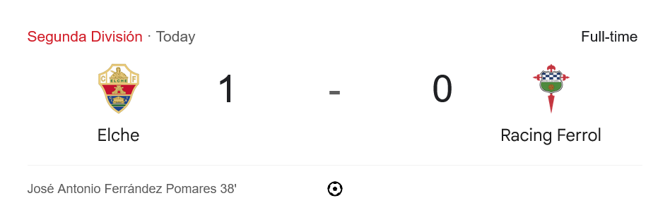จาก : ผลบอลสด เซกุนด้า ดิวิชั่น 2025 ระหว่าง เอลเช่ 1-0 เรซซิ่ง เดอ เฟอรอล วันนี้ 8/4/68 – บ้านกีฬา