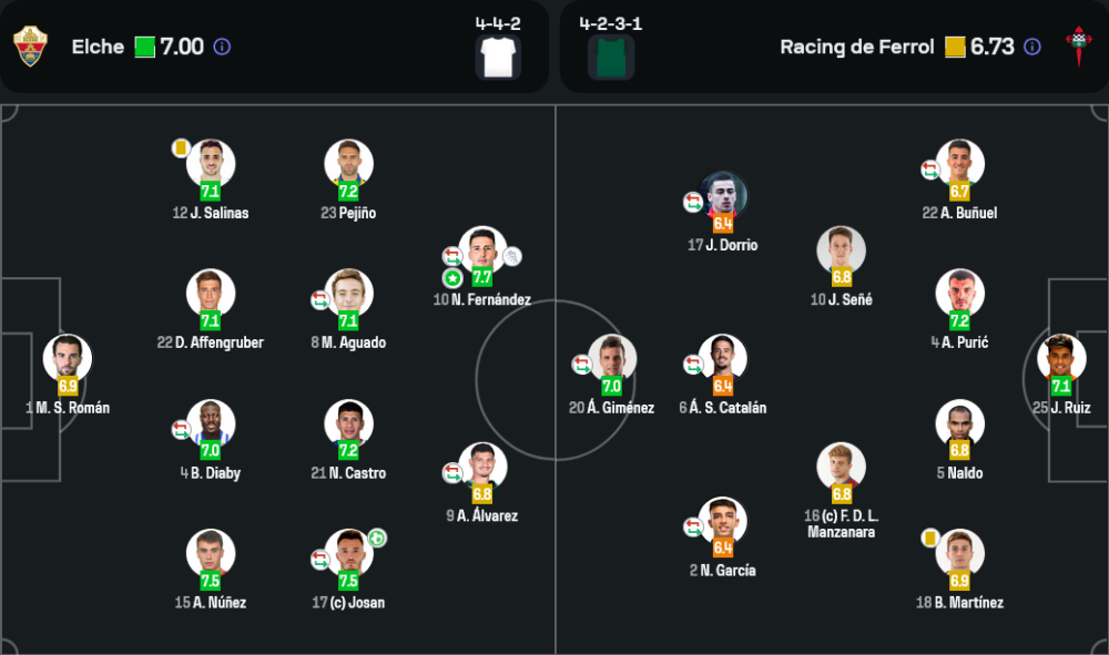 แม้ว่า เรซซิ่ง เดอ เฟอรอล จะสร้างโอกาสยิงได้ 7 ครั้ง แต่ก็เข้ากรอบเพียง 2 ครั้ง เท่านั้น ต่างจาก เอลเช่ ที่ยิงได้ 10 ครั้ง และเข้ากรอบ 3 ครั้ง การเล่นที่ดุดันของ เอลเช่ ส่งผลให้พวกเขาเก็บ 3 คะแนนสำคัญได้ในที่สุด