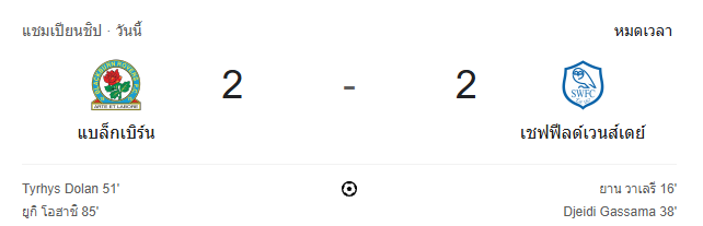 แม้จะโดนนำถึงสองลูกตั้งแต่ครึ่งแรก แต่ แบล็คเบิร์น โรเวอร์ส ไม่ยอมแพ้ เล่นด้วยความมุ่งมั่นตลอดทั้งเกม และได้รับรางวัลด้วยสองประตูจาก Dolan และ Ohashi ที่เปลี่ยนความพ่ายแพ้เป็นแต้มล้ำค่าได้สำเร็จ ขณะที่ เชฟฟิลด์ เว้นส์เดย์ อาจต้องเสียดายโอกาสทองหลายครั้งที่ปล่อยหลุดไปช่วงท้าย ทำให้ ผลบอลสด พลิกจังหวะกลับมาจบที่ 2-2 แบบสุดมัน