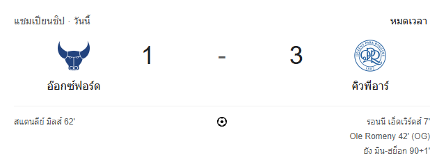 - จบเกม: อ็อกซ์ฟอร์ด ยูไนเต็ด พ่าย ควีนส์ปาร์ค เรนเจอร์ส 1-3