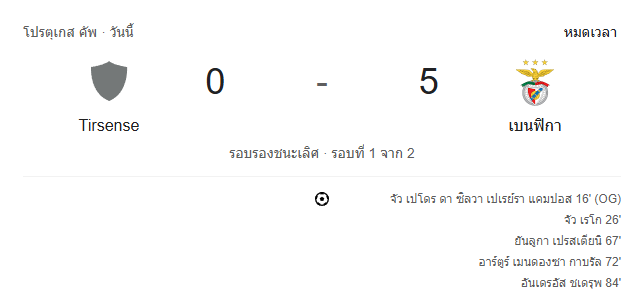• จบเกม: ทีร์เซนเซ่ โดน เบนฟิก้า บุกมาถล่ม 0-5 สถานการณ์ของเจ้าบ้านเรียกได้ว่าโคม่า ก่อนต้องไปเยือนในนัดที่สอง