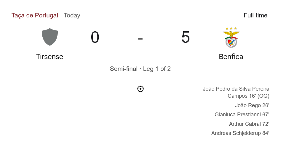 แม้เกมนี้จะเป็นบอลถ้วย แต่ผลลัพธ์ที่เกิดขึ้นทำให้ เบนฟิก้า ก้าวขาข้างหนึ่งสู่รอบชิงชนะเลิศของ Taça de Portugal แบบเต็มตัว ด้วยผลต่างประตูถึง 5-0 ถือเป็นงานหนักสุดขีดสำหรับ Tirsense ที่ต้องไปเยือนในเลกสองพร้อมภารกิจพลิกนรก ซึ่งแทบเป็นไปไม่ได้ในความเป็นจริง