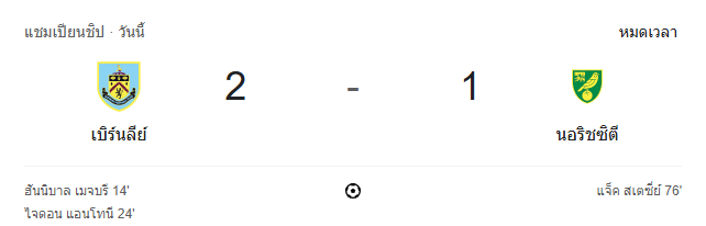 - จบเกม: เบิร์นลี่ย์ 2-1 นอริช ซิตี้