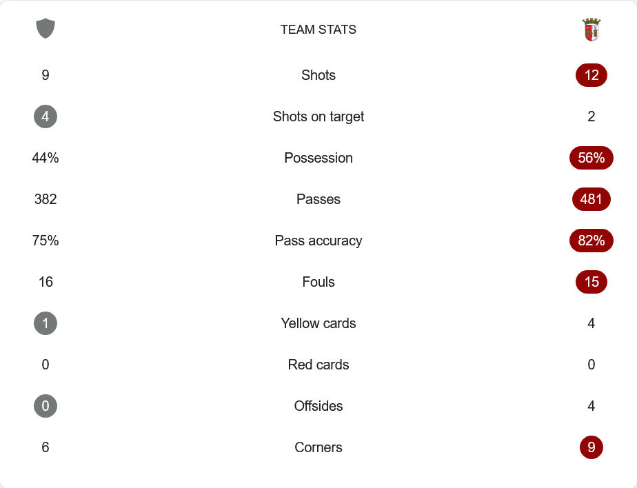- 🔁 46’ บราก้าเปลี่ยน 3 คน: บัมบู, กอร์บี, แฟร์นานเดส ลงแทน โอลิเวร่า, ราซิช และ การ์บี