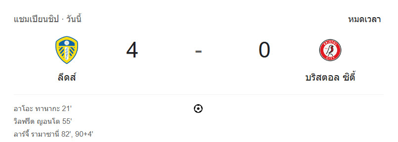 ผลบอลสด อีเอฟแอลแชมเปียนชิป 2025 ระหว่าง ทีมลีดส์ ยูไนเต็ด vs บริสตอล ซิตี้ วันนี้ 29/4/68 ดูบอลย้อนหลัง คลิปไฮไลท์ ดูบอลอีเอฟแอลแชมเปียนชิป 2025
