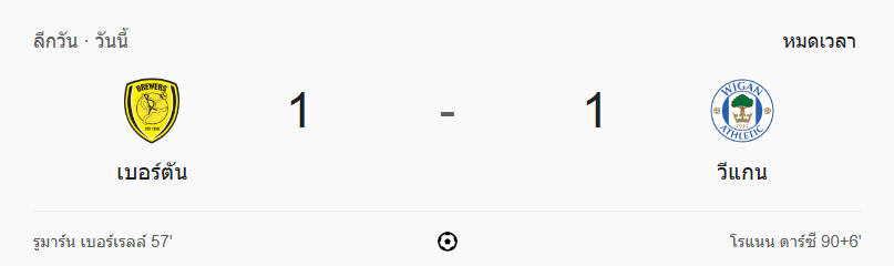 บ้านกีฬา ขอบอกเลยว่าเกมนี้ เบอร์ตันเล่นได้ดีเป็นส่วนใหญ่ โดยเฉพาะช่วงครึ่งหลังที่กดดันวีแกนหนักและออกนำไปก่อน แต่ความเฉียบคมช่วงทดเจ็บของโรแนน ดาร์ซี่ กลายเป็นหอกพิฆาตที่ปล้นแต้มเจ้าบ้านไปแบบเจ็บแสบ บอกเลยว่า ผลบอลสด เกมนี้ไม่ควรละสายตาแม้แต่นาทีเดียว!