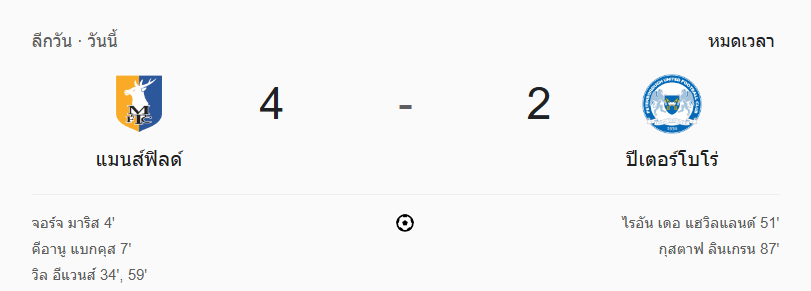 บ้านกีฬา ขอยกให้เกมนี้เป็นหนึ่งในแมตช์ที่แฟนบอลเจ้าถิ่นต้องจดจำ แมนส์ฟิลด์ ทาวน์ เปิดเกมรุกอย่างไม่เกรงใจ ทำสามประตูใน 34 นาทีแรก บวกกับความคมของ วิล อีแวนส์ และการคุมแดนกลางที่แน่นแฟ้น จนแม้ปีเตอร์โบโร่จะพยายามโหมบุกในครึ่งหลังแต่ก็ไม่อาจกลับมาได้ เกมนี้สะท้อนถึงจุดแข็งของเจ้าถิ่นอย่างแท้จริง และ ผลบอลสด คู่นี้ก็ไม่ทำให้ผิดหวังแม้แต่นาทีเดียว