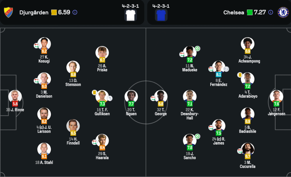 ฝั่งเยอร์การ์เด้น แม้จะมีโอกาสยิงมากกว่า แต่ขาดความเฉียบคมและการต่อบอลในพื้นที่สุดท้าย โดยระบบ 4-2-3-1 ของพวกเขาถูกเจาะซ้ำในแดนกลาง และแผงหลังรับมือความเร็วและการเคลื่อนไหวของแนวรุกเชลซีไม่ทัน