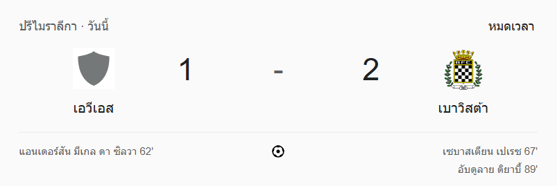 รายงานผลบอลสด: เอวีเอส 1-2 เบาวิสต้า