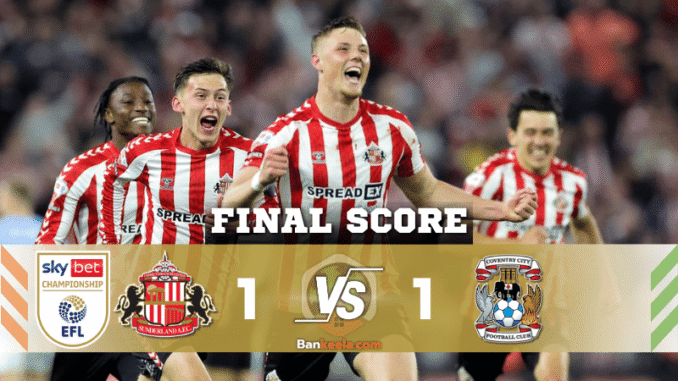 แมตช์ตัดสินระหว่าง ซันเดอร์แลนด์ และ โคเวนทรี ซิตี้ ในรอบรองชนะเลิศเพลย์ออฟ แชมเปียนชิป 2025 เดือดจนหยดสุดท้าย! เกมที่ต้องลากยาวถึงช่วงต่อเวลาพิเศษ ก่อนที่ประตูชัยจะมาถึงในวินาทีสุดท้ายของเกม ทำให้แฟนบอลตามลุ้น ผลบอลสด กันแบบหัวใจจะวาย ก่อนสุดท้าย แมวดำ ซัดประตูตีเสมอสุดดราม่า และผ่านเข้าสู่รอบชิงฯ ด้วยสกอร์รวม 3-2