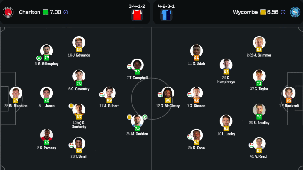 มาคอลี่ย์ กิลเลสพีย์ ฟูลแบ็คจากชาร์ลตัน แอธเลติก คว้ารางวัลผู้เล่นยอดเยี่ยมของเกมไปครองด้วยคะแนน 7.7 เขาแสดงความแน่นอนในเกมรับ สกัดบอลได้หลายครั้ง และยังมีส่วนร่วมในการขึ้นเกมฝั่งซ้ายอย่างมีประสิทธิภาพ รวมถึงมีบทบาทสำคัญในการคุมจังหวะเกมช่วงท้าย