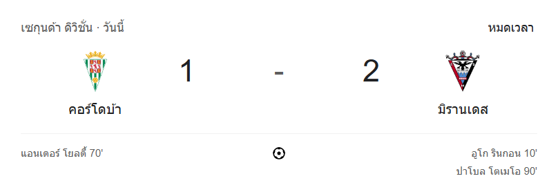 ดราม่าท้ายเกม! มิรานเดสบุกเชือดคอร์โดบ้า 2-1 เกมเดือด เซกุนด้า ดิวิชั่น