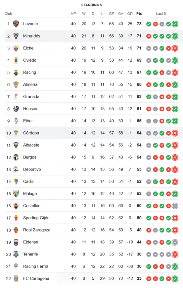 - ⚽ 90′ มิรานเดสยิงประตูชัย 2-1: Pablo Tomeo ยิงประตูในช่วงทดเวลาบาดเจ็บจากการจ่ายของ Urko Izeta