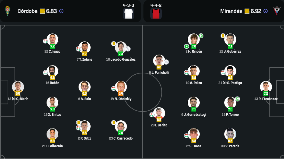 - กองหน้า: C. Isaac 7.2, T. Zidane 6.7, Jacobo González 7.3