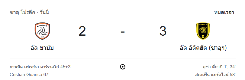 - จบเกม: อัล อิตติฮัด บุกชนะอัล ชาบับ 3-2 เกมมันส์ตลอด 90 นาที!