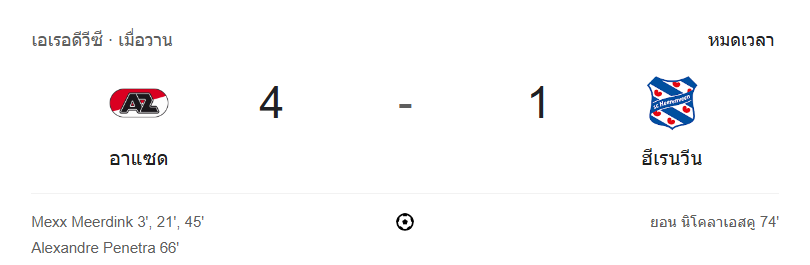 - AZ อัลค์มาร์ เปิดบ้านถล่ม ฮีเรนวีน 4-1!