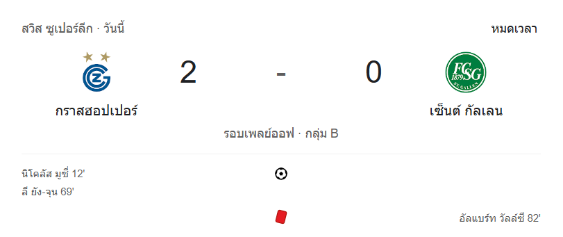 - ครบ 90+4: จบเกม! กราสฮอปเปอร์ส เปิดบ้านชนะ เซนต์ กัลเลน 2-0