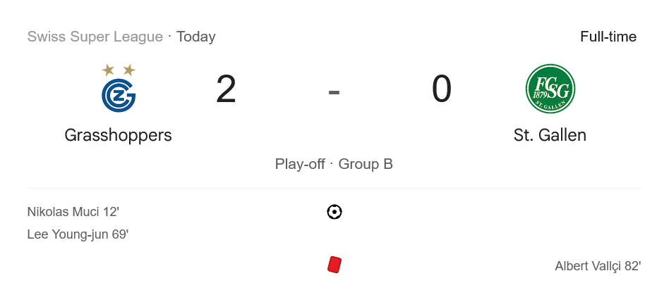 ศึก สวิส ซูเปอร์ลีก เพลย์ออฟ กลุ่ม B ยังคงดุเดือดสมชื่อ และเมื่อคืนนี้ กราสฮ็อปเปอร์ ก็โชว์ฟอร์มยอดเยี่ยมต่อหน้าแฟนบอลในซูริค ไล่บดเอาชนะ เซนต์ กัลเลน ไปแบบไร้ข้อกังขา 2-0 พร้อมพลิกสถานการณ์ลุ้นอยู่รอดแบบเต็มตัว โดยเกมนี้ถือเป็นอีกหนึ่งแมตช์ที่สะท้อนให้เห็นถึงความเขี้ยวลากดินของเจ้าถิ่น และจุดอ่อนที่ต้องเร่งแก้ของเซนต์ กัลเลน ซึ่งแม้จะมีอันดับดีกว่าแต่กลับเล่นกันแบบไร้ความมั่นใจ
