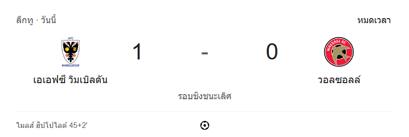 - นาทีที่ 97: จบเกม! เอเอฟซี วิมเบิลดัน เปิดบ้านเฉือนชนะ วอลซอลล์ 1-0