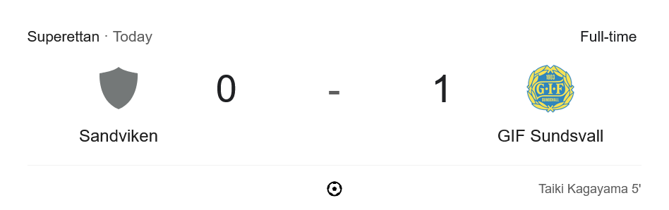 บ้านผลบอล สรุปหลังเกม สวีเดน ซูเปอร์เร็ตเท่น คางายามะซัดโทนตั้งแต่นาทีที่ 5! ซันด์สวาลล์บุกดับแซนด์ไวเค่นส์คาบ้าน 1-0 เก็บชัยสำคัญขยับขึ้นกลางตาราง