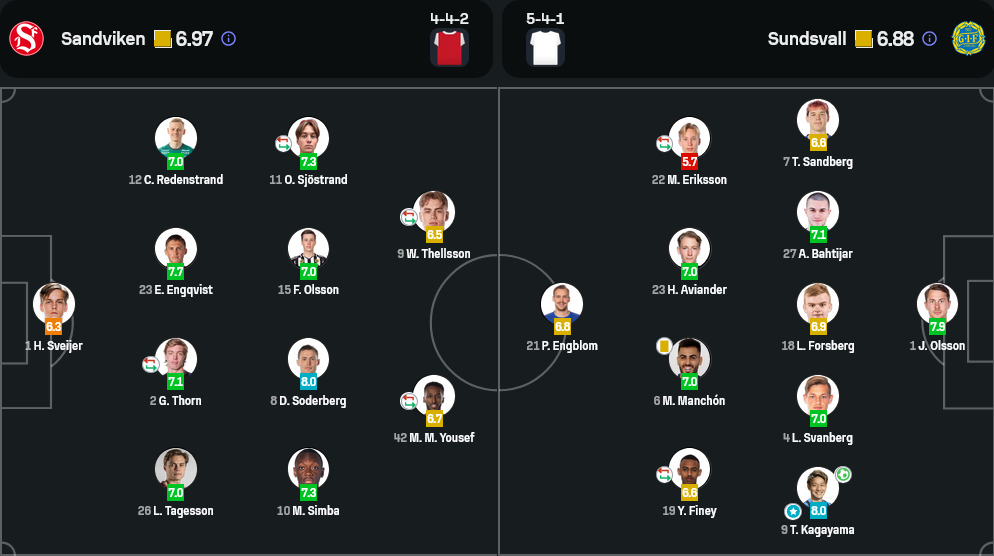 จากการ วิเคราะห์บอล รูปเกมทั้งสองฝั่งชัดเจนว่า ซันด์สวาลล์เลือกเน้นความแน่นหนาในแนวรับด้วยระบบ 5-4-1 ที่ยืนตำแหน่งเป็นระเบียบและดักทางเกมริมเส้นได้อยู่หมัด โดยมีคางายามะที่เล่นได้โดดเด่นทั้งรุกและรับ ส่วนแซนด์ไวเค่นส์จัดทีมด้วยระบบ 4-4-2 หวังเจาะทางปีกและเน้นการครอสจากริมเส้น แต่ยังขาดความแม่นยำในพื้นที่สุดท้าย บวกกับการประสานงานแดนหน้าไม่เฉียบคมพอ ทำให้โอกาสหลายครั้งจบลงแบบน่าผิดหวัง
