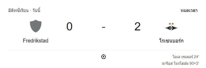ผลบอลสด อีลิทซีเรียน นอร์เวย์ 2025 ระหว่าง ทีมเฟรดริคสตัด vs โรเซนบอร์ก วันนี้ 29/5/68 ดูบอลย้อนหลัง คลิปไฮไลท์ ดูบอลอีลิทซีเรียน นอร์เวย์ 2025
