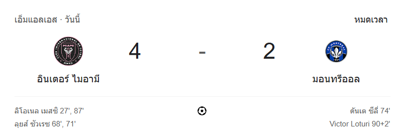 • นาทีที่ 94: จบเกม! อินเตอร์ ไมอามี เปิดบ้านชนะ มอนทรีออล 4-2