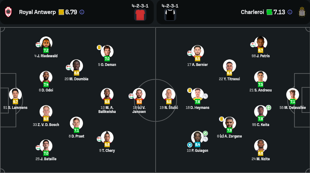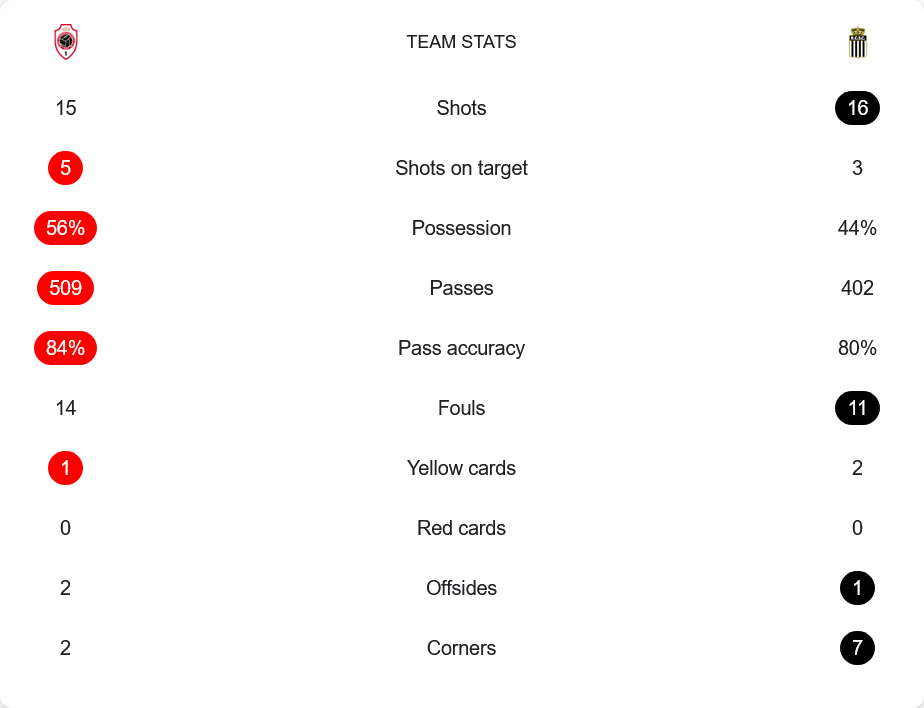แม้รอแยล อันท์เวิร์พจะมีเปอร์เซ็นต์การครองบอลมากกว่าที่ 56% และจ่ายบอลได้ถึง 509 ครั้ง แต่จังหวะจบสกอร์ของพวกเขายังเป็นรอง ชาเลอร์รัวที่ยิงรวม 16 ครั้ง แม้จะเข้ากรอบเพียง 3 หน แต่กลับเปลี่ยนเป็น 2 ประตู ส่วนอันท์เวิร์พยิงตรงกรอบ 5 หนจาก 15 ครั้ง ได้ประตูเดียว สะท้อนให้เห็นถึงประสิทธิภาพการเข้าทำ ฝ่ายชาเลอร์รัวยังมีจังหวะสวนกลับอันตรายกว่า และได้เตะมุมมากถึง 7 ครั้ง เทียบกับอันท์เวิร์พที่ได้เพียง 2 ครั้ง แม้จำนวนฟาวล์ของเจ้าบ้านจะมากถึง 14 ครั้ง แต่ก็ไม่อาจหยุดเกมรุกของทีมเยือนที่เฉียบขาดกว่าได้