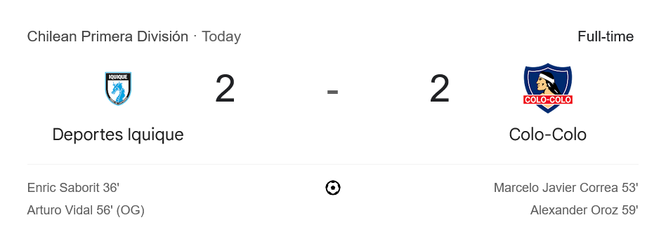 จาก : ผลบอลสด ชิลี พรีเมร่า ดิวิชั่น ระหว่าง เดปอร์เตส อิควิกกัว 2-2 โคโล โคโล่ วันนี้ 13/6/68 – บ้านกีฬา