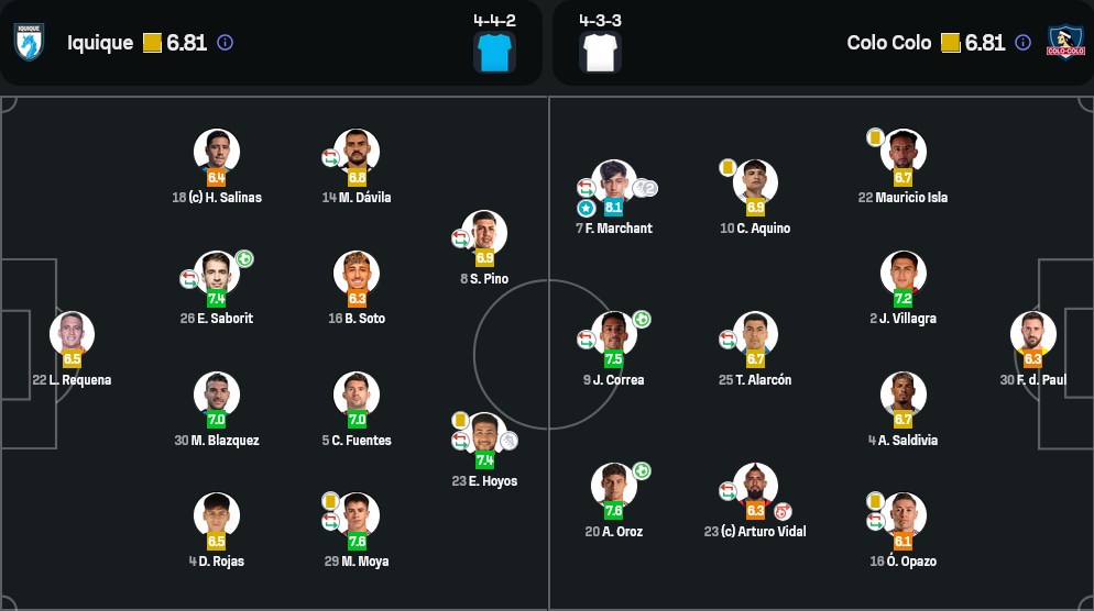 เดปอร์เตส อิควิกกัว (4-4-2) – ผู้จัดการทีม: เฟอร์นันโด ดิอาซ