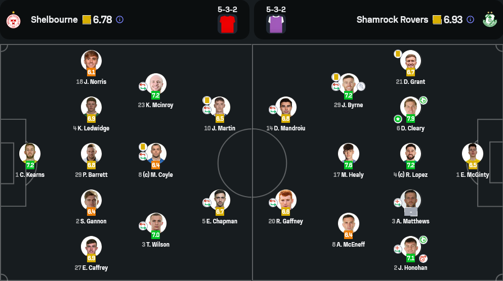 เกมนี้เชลบอร์นมาในระบบ 5-3-2 ที่วางแผนชัดเจนว่าจะรับแน่นแล้วหาจังหวะสวนกลับ โดยมีแมคอินรอยและคอยล์คุมแดนกลาง ส่วนฮอโนแฮนรับหน้าที่เกมรับริมเส้น ทว่าการครองบอลและจังหวะสุดท้ายยังไม่เฉียบคม พลาดง่าย และไม่มีจังหวะยิงตรงกรอบเลยในเกมนี้ ด้านแชมร็อค โรเวอร์สที่วางหมาก 5-3-2 แบบดุดันกว่า ครองบอลได้เหนือกว่าเล็กน้อย และใช้ประโยชน์จากวิงแบ็คอย่างคลีรีและเกรซเปิดเกมรุกทางริมเส้น บวกกับมิดฟิลด์อย่างแมทธิว ฮีลีย์ ที่ปั้นเกมอย่างต่อเนื่อง หากจะวิเคราะห์บอลอย่างลึกถือว่าแชมร็อควางระบบการเข้าทำได้ครบเครื่องทั้งเกมรุกและเกมรับ