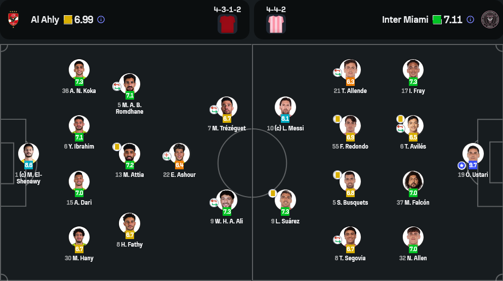 ทั้งสองทีมสร้างโอกาสยิงได้สูสี เอล อาห์ลียิงทั้งหมด 11 ครั้ง เข้ากรอบ 8 ส่วนอินเตอร์ ไมอามียิง 14 ครั้ง เข้ากรอบ 6 และยิงชนเสาไปถึง 2 ครั้ง การฟาวล์เกิดขึ้นรวม 21 ครั้ง ใบเหลืองมีถึง 5 ใบ เกมนี้ใช้พละกำลังและความแม่นยำสูง ฝั่งอินเตอร์มีการส่งบอลมากกว่า (492 ต่อ 398) และได้เตะมุมถึง 10 ครั้ง ขณะที่เอล อาห์ลีมีโอกาสจบสกอร์ในกรอบเขตโทษมากกว่าเล็กน้อย รวมถึงมีจังหวะได้ฟาวล์ในพื้นที่สุดท้ายถึง 5 ครั้งที่อันตรายแต่ยังจบไม่ได้