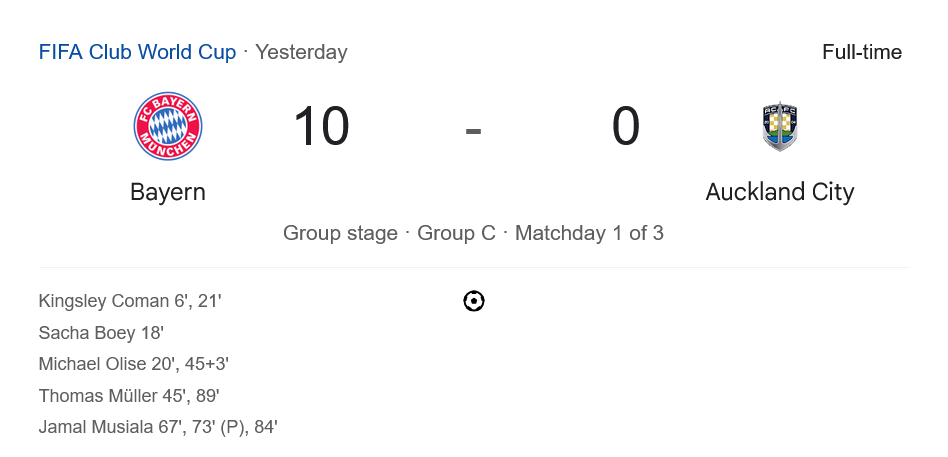 จาก : ผลบอลสด ชิงแชมป์สโมสรโลก 2025 ระหว่าง บาเยิร์น มิวนิค 10-0 โอคแลนด์ ซิตี้ วันนี้ 15/6/68 – บ้านกีฬา