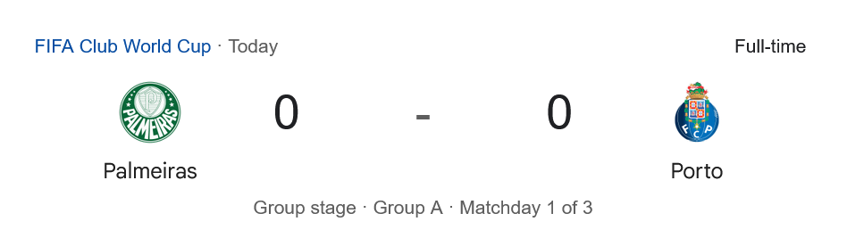 เกมต่อไปของพัลไมรัสจะพบกับอัล อาห์ลีในวันที่ 19 มิถุนายน เวลา 23:00 น. ส่วนปอร์โต้จะลงเตะพบกับอินเตอร์ ไมอามี่ วันที่ 20 มิถุนายน เวลา 02:00 น. โดยทั้งสองแมตช์ถือเป็นเกมสำคัญของ ตารางบอล กลุ่ม A ที่จะวัดโอกาสเข้าสู่รอบน็อกเอาต์อย่างแท้จริง
