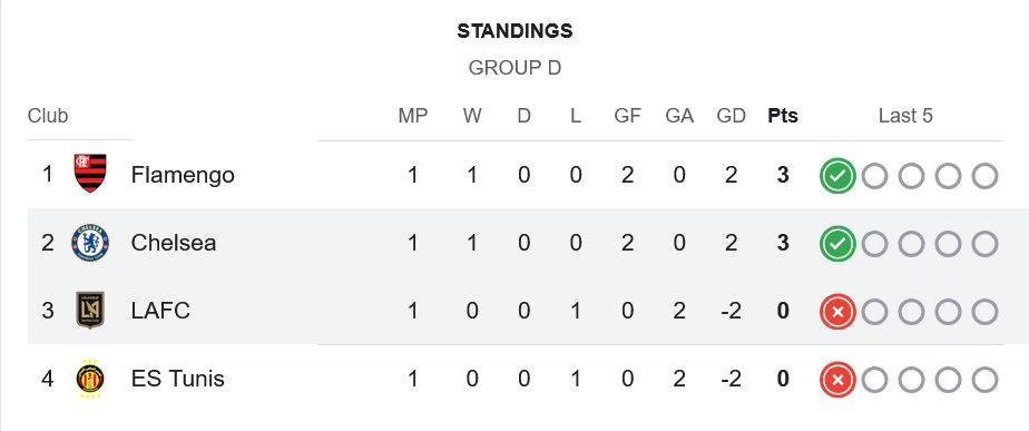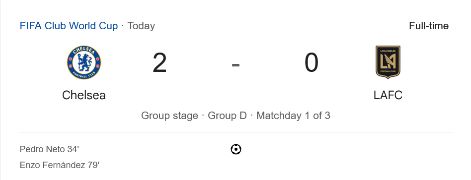 ชัยชนะเกมนี้ทำให้เชลซีมี 3 แต้มเท่ากับฟลาเมงโก้ แต่ลูกได้เสียเป็นรองจึงรั้งอันดับ 2 ขณะที่ LAFC หล่นไปอยู่อันดับ 3 โดยยังไม่มีแต้ม และประตูได้เสีย -2 เท่ากับเอสเปรานซ์ ทีมบ๊วยของกลุ่ม การแข่งขันในสองนัดที่เหลือของรอบแบ่งกลุ่มจึงเป็นความกดดันสูงสุดสำหรับตัวแทนจากเมเจอร์ลีก