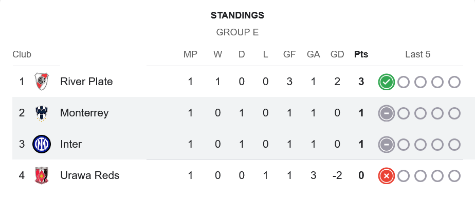 จาก ตารางบอล กลุ่ม E เกมถัดไป มอนเทอร์เรย์ จะพบกับ ริเวอร์เพลท ในวันที่ 22 มิถุนายน เวลา 08:00 น. ขณะที่ อินเตอร์ มีโปรแกรมเจอกับ อูราวะ เรดส์ ในวันที่ 22 มิถุนายน เวลา 02:00 น. แฟนบอลรอติดตามเกมที่มีความหมายทั้งสองคู่ได้อย่างใกล้ชิด