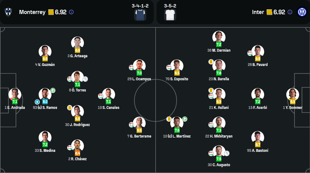ฝั่งมอนเทอร์เรย์มาแบบไม่เกรงกลัว ใช้แผน 3-4-1-2 เน้นเกมสวนกลับและลูกนิ่งเป็นหลัก ตอร์เรส และชาเวซ ทำหน้าที่ในการทะลวงเกมรับอินเตอร์ได้ดีในครึ่งแรก ขณะที่ เซร์คิโอ รามอส สร้างอิมแพคมหาศาลทั้งในเกมรับและจังหวะเซ็ตพีซ ถือว่าเป็นเกมที่ทีมจากเม็กซิโกใช้ทรัพยากรที่มีได้อย่างมีประสิทธิภาพ