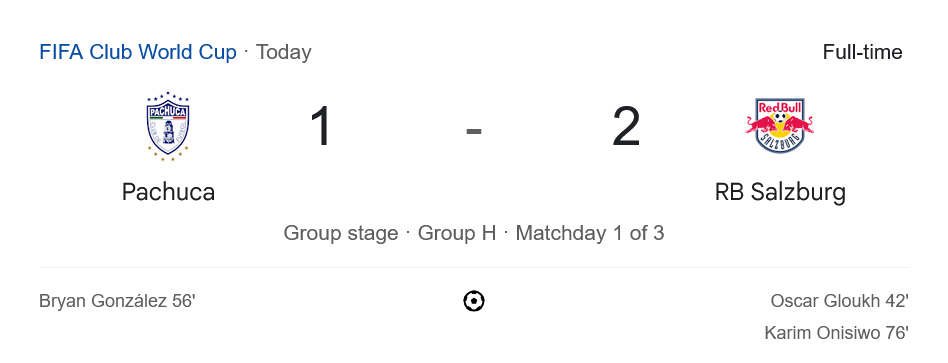 ศึกฟีฟ่า คลับ เวิลด์คัพ 2025 กลุ่ม H เปิดฉากไปอย่างเร้าใจ เมื่อ เร้ดบูลล์ ซัลซ์บวร์ก ตัวแทนแกร่งจากออสเตรีย ระเบิดฟอร์มเยือนบุกเอาชนะ ปาชูก้า ทีมแกร่งจากเม็กซิโก 2-1 คว้า 3 แต้มเต็มประเดิมกลุ่มแบบสุดมันส์ ใครที่กำลังติดตาม ผลบอลสด กับ บ้านกีฬา ไม่มีผิดหวัง เพราะเกมนี้มันส์ตั้งแต่นาทีแรกจนสิ้นเสียงนกหวีด