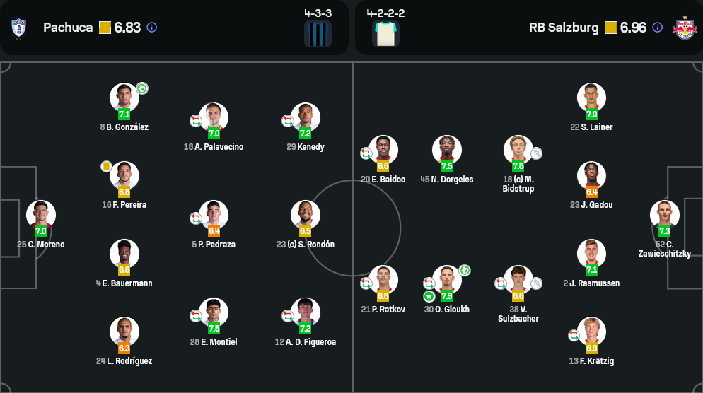 🔁 88′ – ปาชูก้าส่ง คาร์ลอส ซานเชซ, ซัลซ์บวร์กส่ง จอห์น เมลเบิร์ก