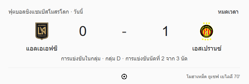 บ้านกีฬา ขอสรุปศึก ฟีฟ่าคลับเวิลด์คัพ กลุ่ม D คู่มันส์ที่ “ลอส แอนเจลิส เอฟซี” ปะทะ “เอสเปรานซ์ เอสที” แบบดุเดือด สมศักดิ์ศรีเวทีระดับโลก ซึ่งเกมนี้เต็มไปด้วยจังหวะลุ้นระทึกตลอด 90 นาที และที่สำคัญ ผลบอลสด คู่นี้จบด้วยชัยชนะของทีมจากแอฟริกาเหนือแบบบีบหัวใจแฟนบอลอเมริกัน!