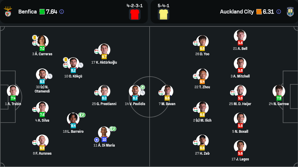 Ángel Di María คว้าตำแหน่งนักเตะยอดเยี่ยมของเกมอย่างไร้ข้อกังขา หลังทำไป 2 ประตูจากจุดโทษ และมีบทบาทในเกมรุกตลอดทั้งแมตช์ ได้เรตติ้งสูงสุดถึง 10.0 ไม่เพียงแค่ยิง แต่ยังสร้างโอกาสและปั่นป่วนแนวรับโอคแลนด์ตลอดเวลา