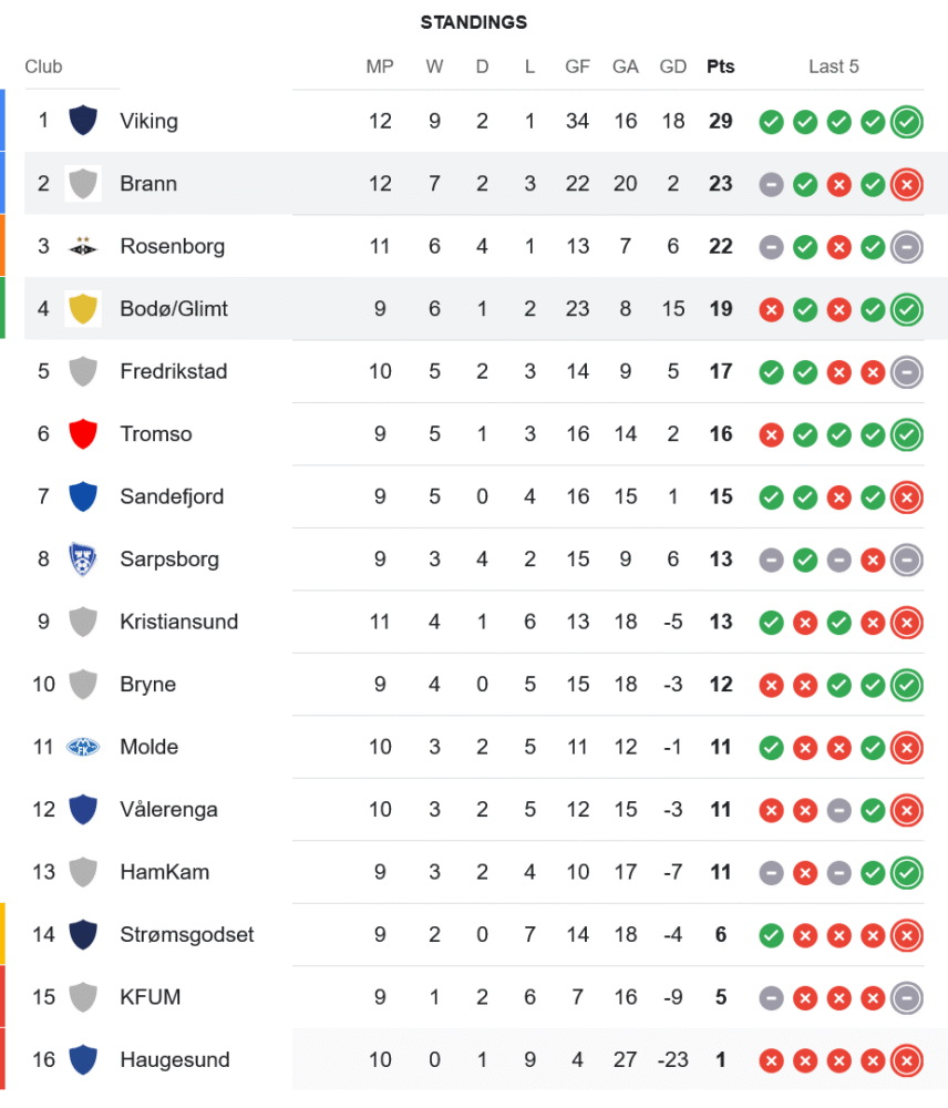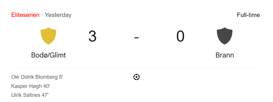 ชัยชนะเกมนี้ส่งผลให้ โบโด กลิมท์ เก็บเพิ่มเป็น 19 คะแนนจาก 9 นัด ขยับขึ้นอันดับ 4 แบบเต็มภาคภูมิ ไล่บี้สามอันดับแรกอย่างสนุก โดยตามหลังรองจ่าฝูง บรานน์ อยู่เพียง 4 แต้ม และแข่งน้อยกว่าอีกด้วย ด้านบรานน์ต้องช็อกกับการพ่ายนัดที่สามของฤดูกาล เสียโมเมนตัมในการลุ้นแชมป์ไปไม่น้อย