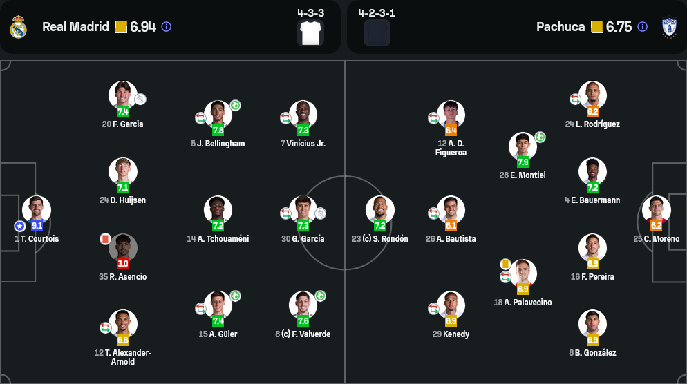กองหน้า: จู๊ด เบลลิงแฮม (7.8), อาร์ด้า กูเลอร์ (7.4), วินิซิอุส จูเนียร์ (7.3)