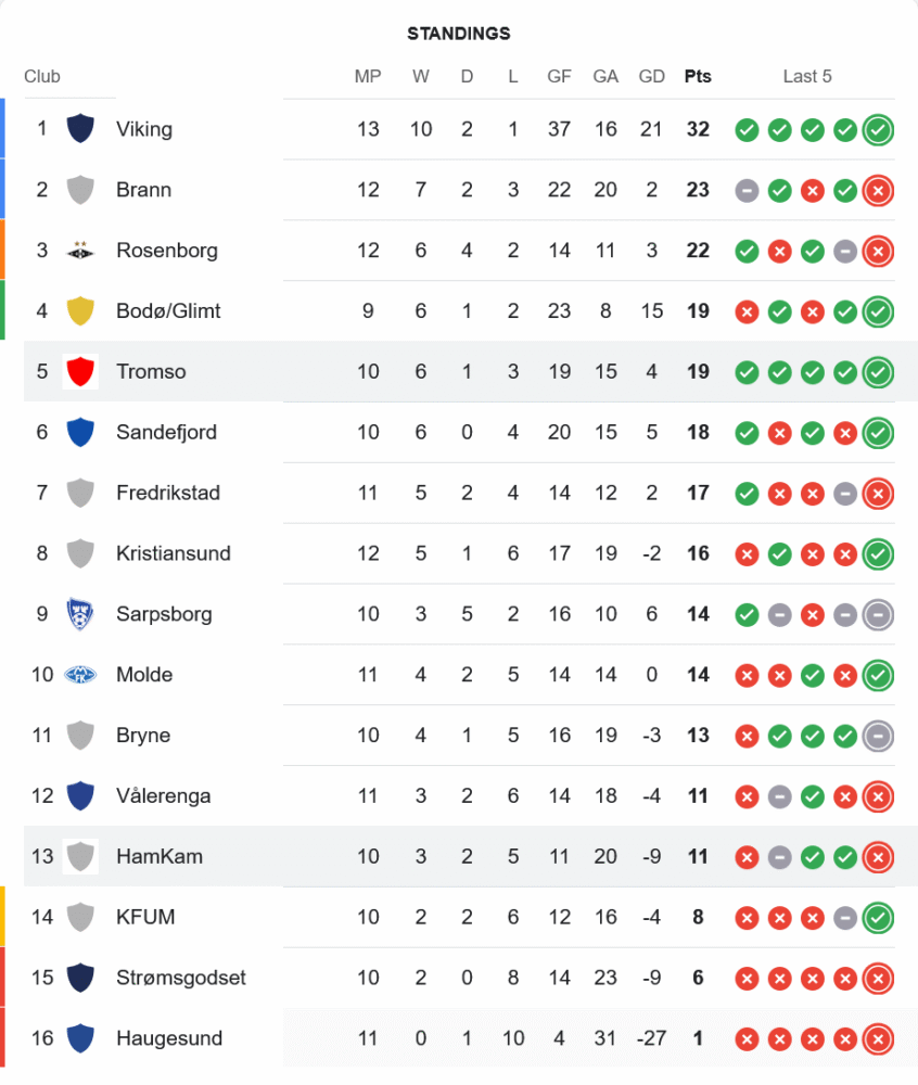 ชัยชนะนัดนี้ส่ง ทรอมโซ่ ขยับขึ้นอันดับ 5 ของตาราง มี 19 แต้มจาก 10 นัด เท่ากับ โบโด กลิมท์ และแซนด์ฟยอร์ด แต่ได้เปรียบประตูได้เสีย และยังตามหลังจ่าฝูงไวกิ้งอยู่ 13 แต้ม ขณะที่ ฮามคัม ยังรั้งอันดับ 13 มีเพียง 11 คะแนนจาก 10 นัด ต้องเร่งเก็บแต้มเพื่อหนีจากโซนตกชั้นที่มีฮาวเกซุนด์จ้องอยู่ข้างล่างเพียง 10 แต้มเท่านั้น