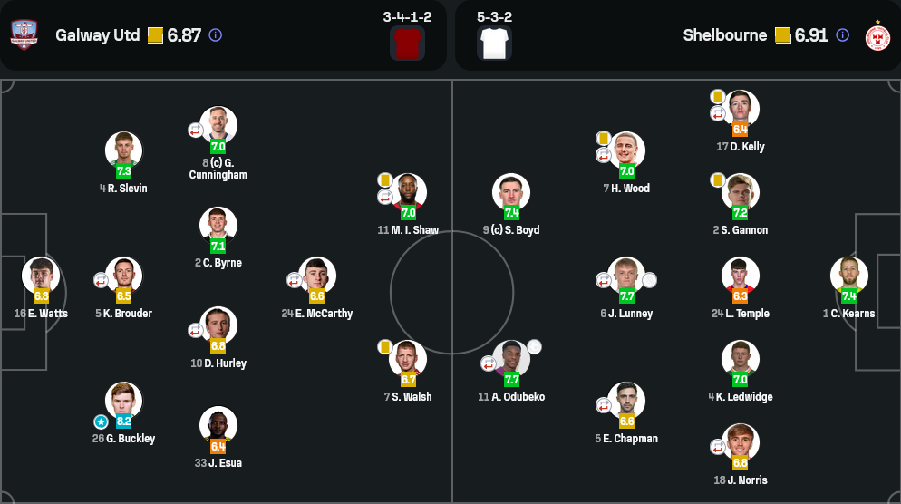 กัลเวย์ ยูไนเต็ด (3-4-1-2) | ผู้จัดการทีม: John Caulfield