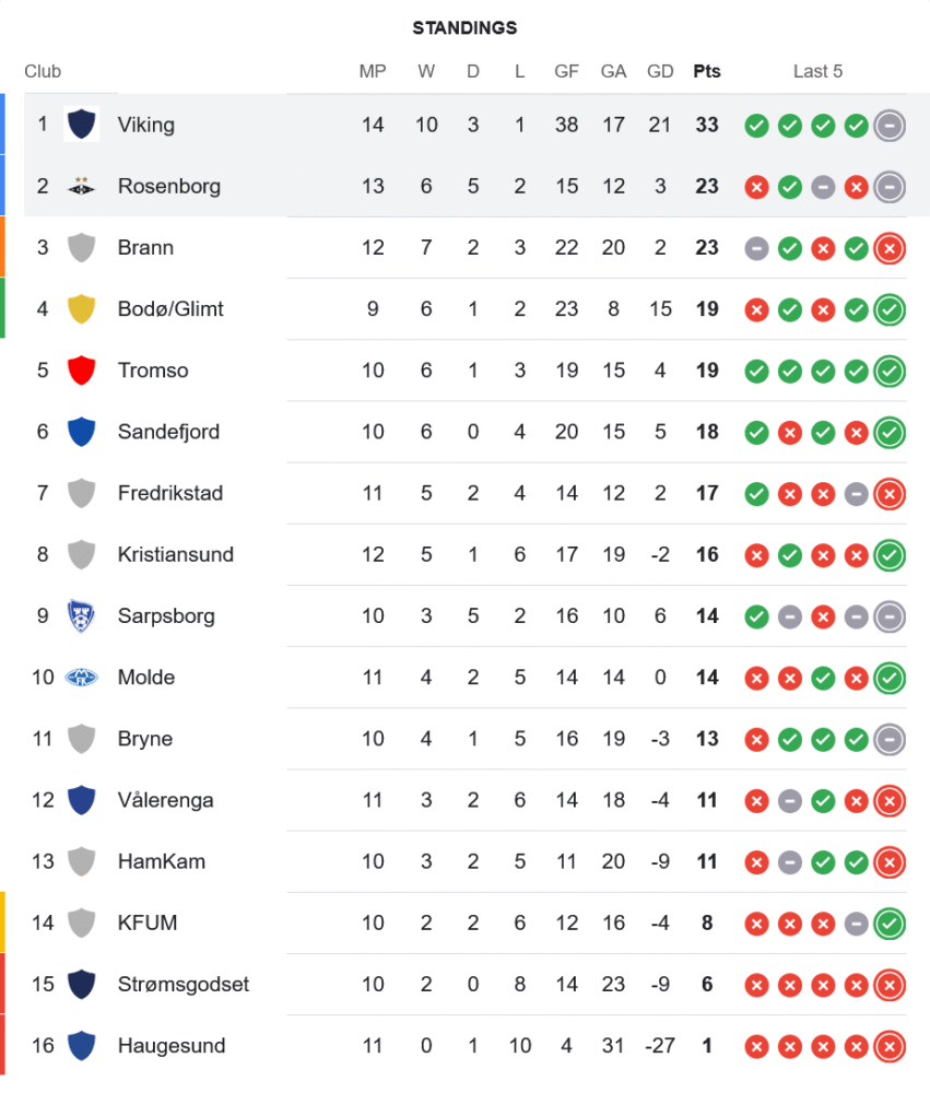 ผลเสมอนี้ทำให้ ไวกิ้ง เอฟซี เก็บเพิ่มเป็น 33 แต้มจาก 14 นัด ยึดจ่าฝูงแบบแน่นหนึบ นำห่างอันดับ 2 อย่างโรเซนบอร์กถึง 10 แต้ม โรเซนบอร์กเองแม้จะเก็บได้เพียงแต้มเดียว แต่ยังคงยึดอันดับ 2 ด้วยคะแนน 23 เท่ากับทีมอันดับ 3 อย่างบรานน์ แต่แข่งมากกว่าหนึ่งนัด