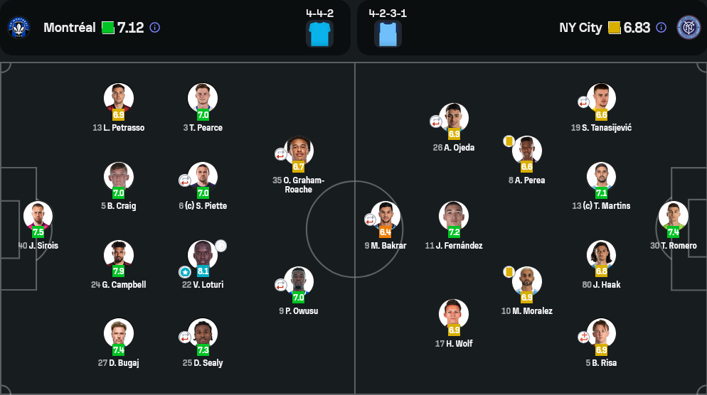 ตำแหน่ง Player of the Match ตกเป็นของ วิคเตอร์ โลตูรี ห้องเครื่องวัยหนุ่มของมอนทรีออลที่โชว์ฟอร์มแกร่งทั้งเกม เกมนี้เจ้าตัวยิงประตูชัยสุดสวย และทำหน้าที่คุมแดนกลางได้เยี่ยม ทั้งแย่งบอล อ่านเกม และเชื่อมเกมรับ-รุกอย่างมีวินัย ได้คะแนนสูงสุดของทั้งสองทีมที่ 8.1 แบบไร้ข้อกังขา