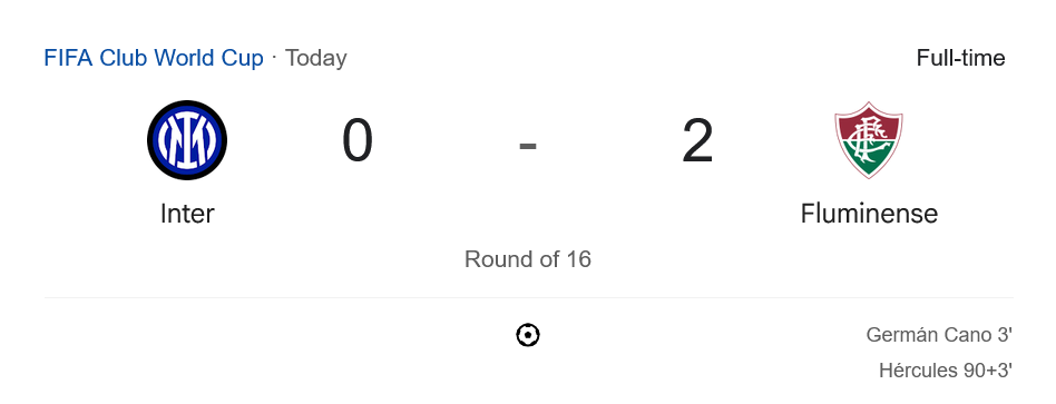 ศึกฟุตบอล FIFA Club World Cup รอบ 16 ทีมสุดท้าย เมื่อช่วงเช้ามืดที่ผ่านมา ตามเวลาบ้านเรา ผลการแข่งขัน บ้านผลบอล ทำเอาแฟน “งูใหญ่” ต้องกุมขมับ เมื่อ อินเตอร์ มิลาน โดนทีเด็ดบอลบราซิลจาก ฟลูมิเนนเซ่ บุกมาอัดถึง 0-2 ตกรอบอย่างพลิกล็อกทั้งที่เป็นฝ่ายครองเกมเหนือกว่าตลอดทั้ง 90 นาที