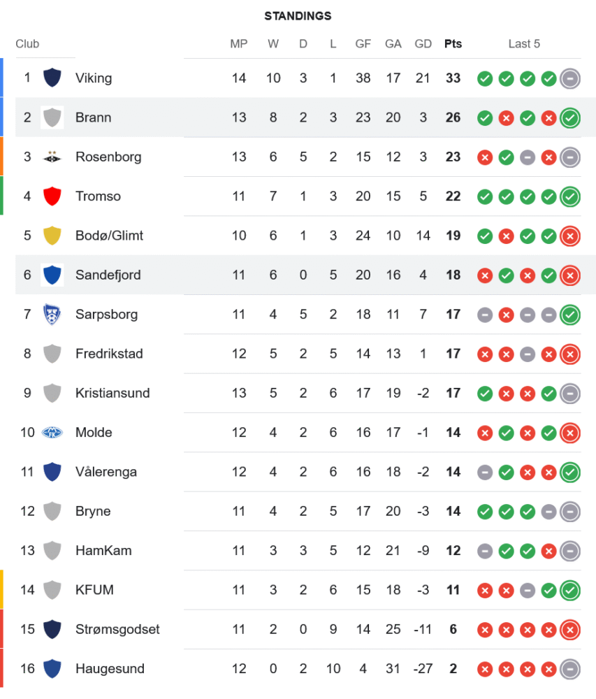 ชัยชนะนัดนี้ทำให้บรานน์เก็บเพิ่มเป็น 26 แต้มจาก 13 นัด รั้งอันดับ 2 ต่อไปตามหลังจ่าฝูงไวกิ้ง 7 แต้มแต่แข่งน้อยกว่าหนึ่งเกม ถือว่ายังอยู่ในเส้นทางลุ้นแชมป์เต็มตัว ส่วนซานเดฟยอร์ดแม้จะแพ้แต่ยังอยู่อันดับ 6 ด้วยผลงาน 18 แต้มจาก 11 นัด ซึ่งถือว่ายังเกาะกลุ่มบนได้ดี
